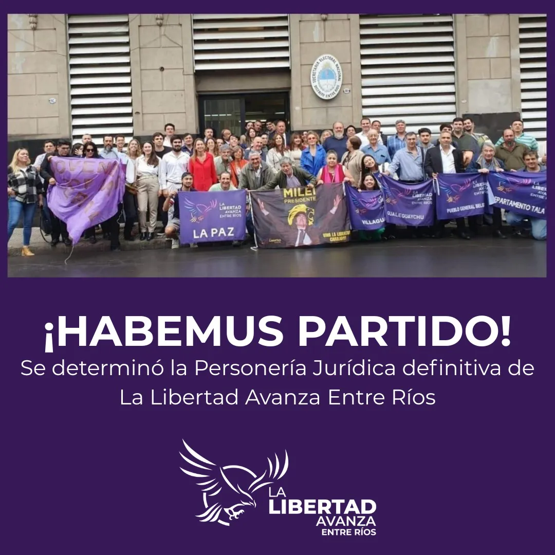 Con la obtención de la personería jurídico-política definitiva, La Libertad Avanza Entre Ríos marca un antes y un después. Es un logro trascendental que nos permite consolidar nuestra identidad partidaria y competir en el escenario electoral con sello propio. Este avance significa dejar atrás la dependencia de estructuras ajenas, conocidas como "sellos de goma" terminando así con el bipartidismo en la provincia.